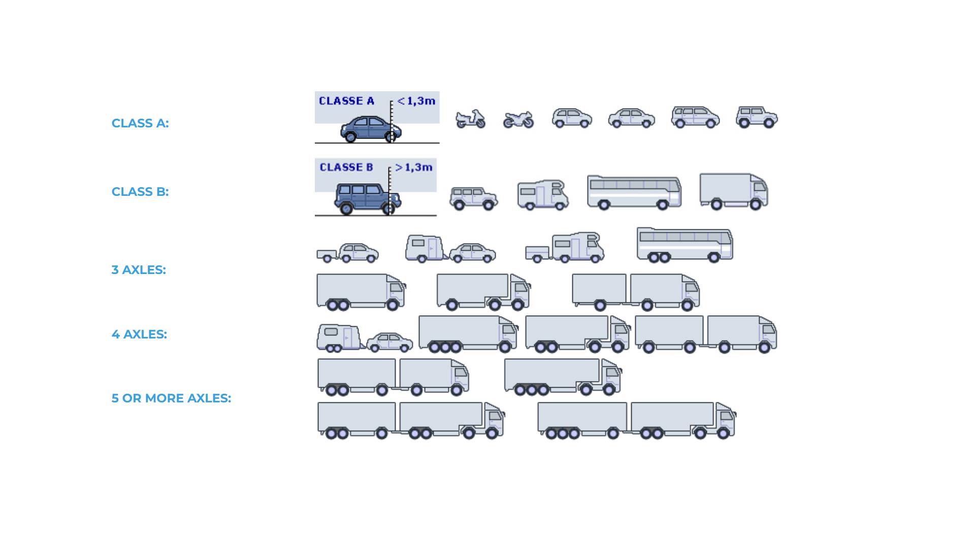Zacznijmy od tego, że we Włoszech nie kupujecie winiet, płacicie za odcinki na bramkach – podczas wyjazdu z odcinka. Co zrobić jeśli zgubicie bilet na autostradę we Włoszech, już pisaliśmy – zobaczcie jak wyglądają ceny za poszczególne odcinki autostrad we Włoszech dla typowego samochodu w klasie A do 1,3 m wysokości. Klas jest więcej: B (powyżej 1,3 m), z trzema osiami, z czterema osiami i pięcioma osiami. Poniżej zobaczcie wykres z oficjalnej strony włoskich autostrad. Za klasę B dopłacicie niewiele więcej do standardowych cen.