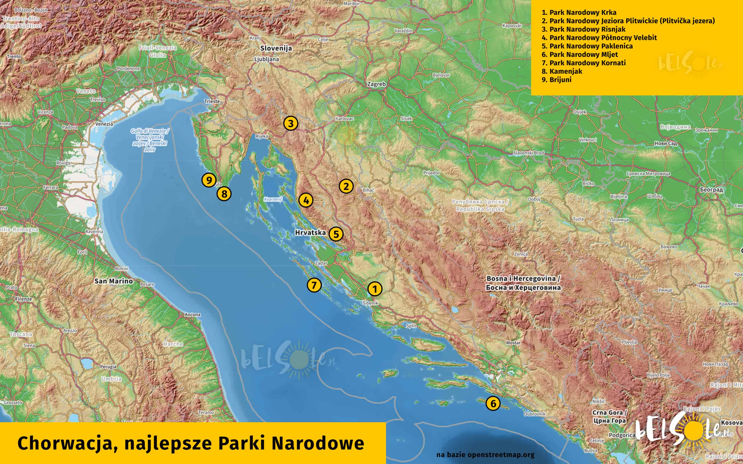 Zacznijmy od mapy najpopularniejszych parków narodowych w Chorwacji.