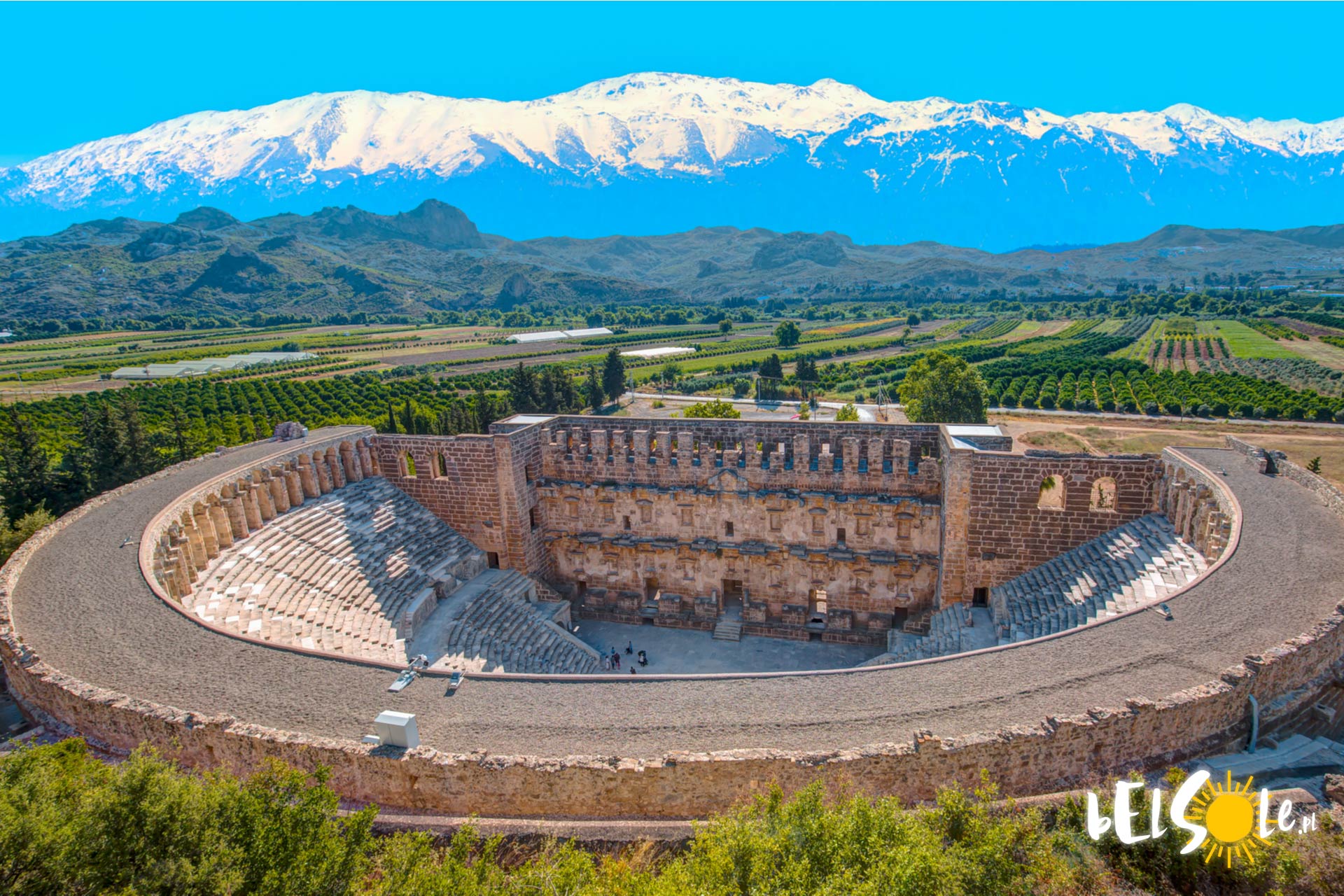 Stolicę Riwiery Tureckiej od Aspendos dzieli około 50 kilometrów, jednak warto pokonać ten dystans. Zobaczycie tu jedną z najlepszych atrakcji nie tylko Antalyi, ale i całej Turcji – rzymski amfiteatr. Mówi się, że to najlepiej zachowana budowla tego typu na świecie. Amfiteatr powstał w II wieku p.n.e., w okresie rządów Marka Aureliusza. Za panowania osławionego prezydenta Mustafy Ataturka zajęto się jego odnowieniem. Widownia może pomieścić 15 000 osób. Odbywają się tu – zwłaszcza w okresie letnim – koncerty, spektakle operowe, a także występy baletowe.