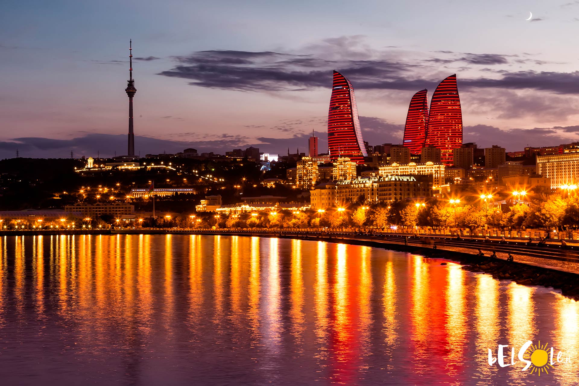To najbardziej znana atrakcja Baku, 3 szklane wieżowce górują nad panoramą miasta i stanowią jego wizytówkę. W jednym z nich znajdują się biura, w jednym apartamenty w jednym hotel. Fasada wieżowców usiana jest żarówkami LED, na których to często wyświetlają się płomienie ognia lub inne ważne dla mieszkańców informacje.