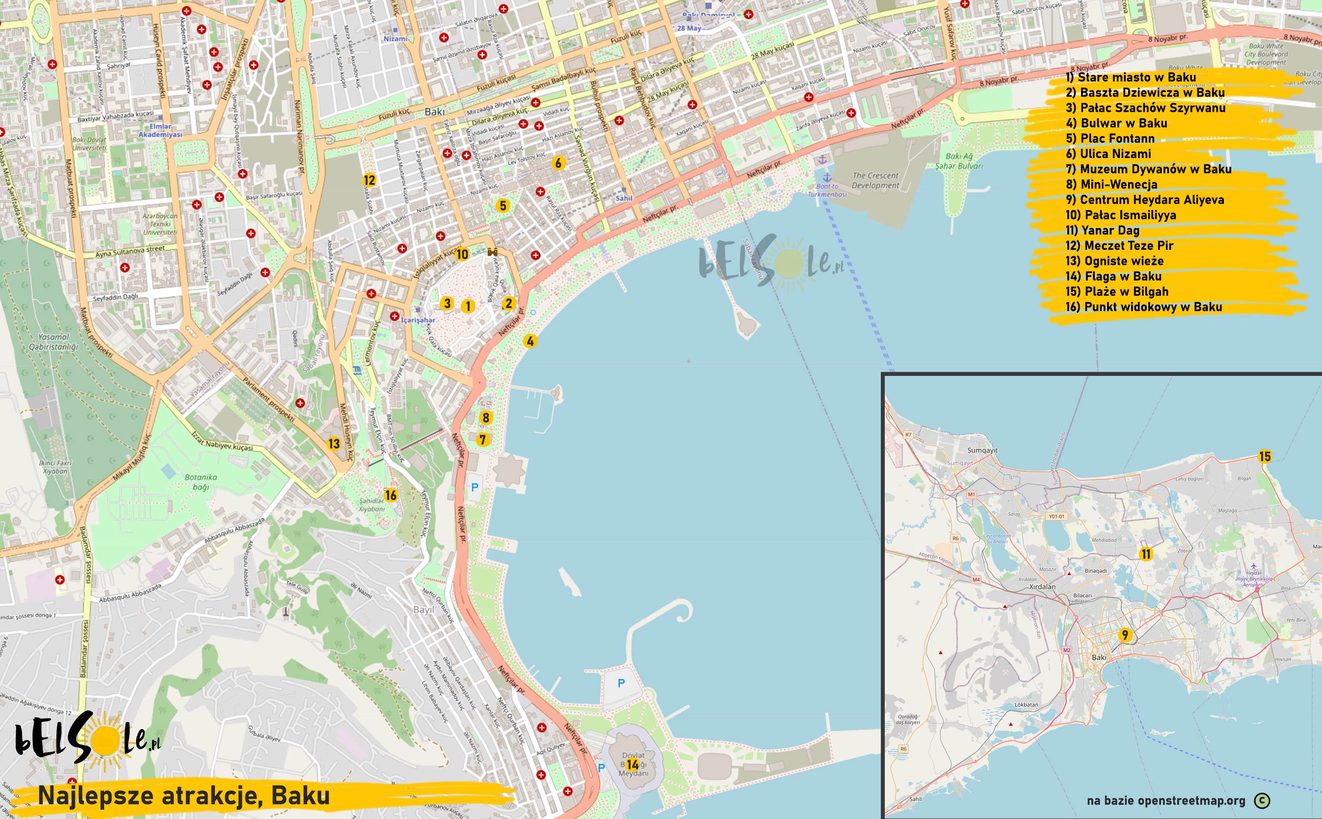 Mapa atrakcji Baku