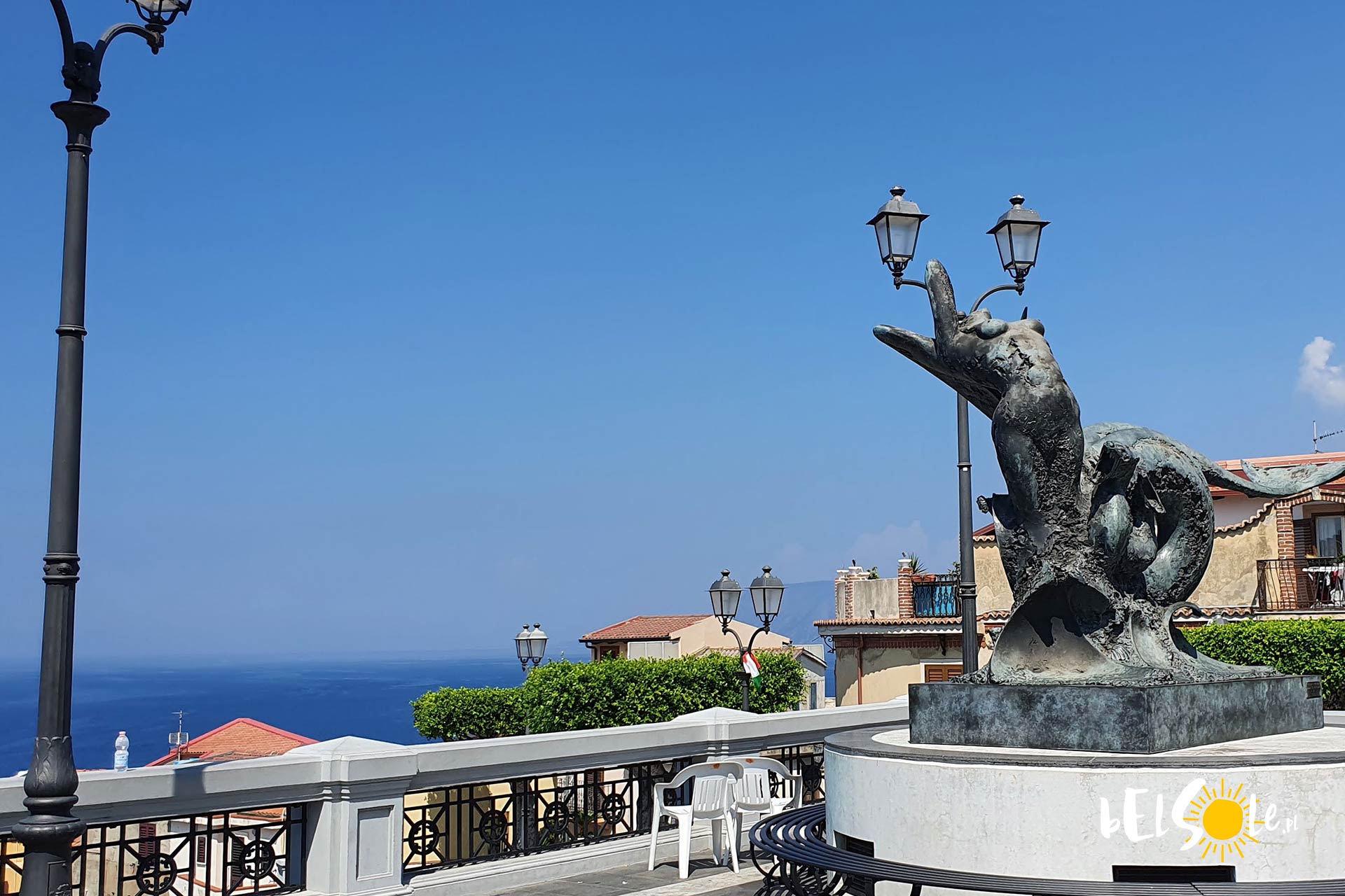 Ciekawa atrakcja w Scilli? Scilla ma pełno pięknych punktów widokowych na miasto, plażę i Chianalea di Scilla. To plac z widokiem na zachodnią część miasta z plażą oraz pomnikiem potwora greckiego Scylli. Atakował on według mitów i legend statki w cieśninie mesyńskiej. Zobaczcie ile głów miała Scylla.