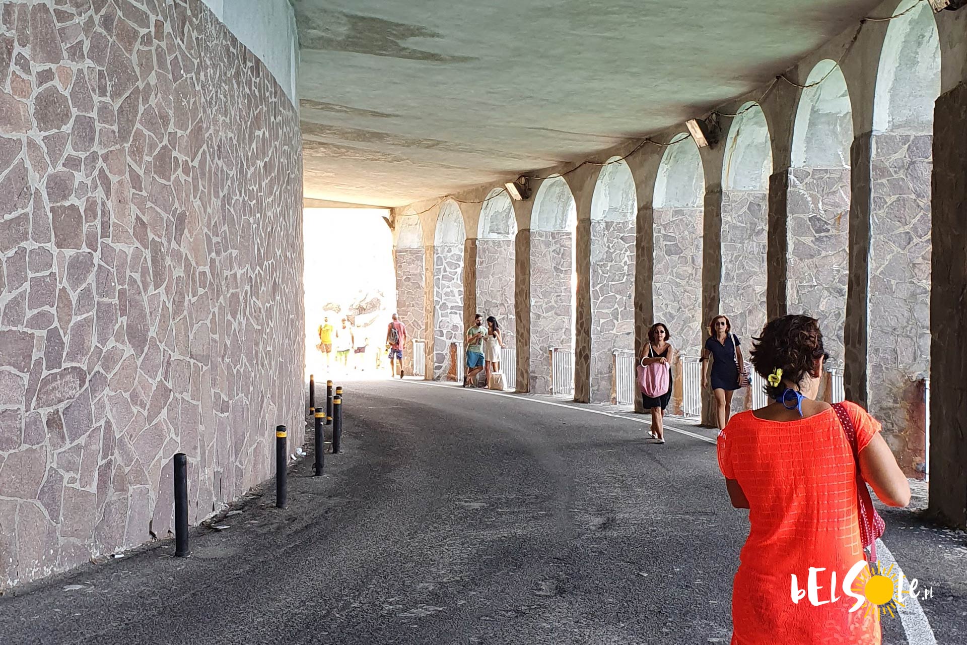 Żeby przejść z jednej na drugą stronę klifu, można przejść po klifie górą lub specjalnie wykopanym tunelem zaraz przy morzu z plaży do samego portu i dzielnicy rybackiej. W nim znajdziecie ciekawostkę, mianowicie kapliczkę z figurą Madonnina del Porto/Mare z 1953 roku, gdzie kalabryjczycy składają w podzięce dary. Tutaj tez można odpocząć od gorąca, bo temperatury są zdecydowanie niższe w wydrążonej skale – do tego możecie podziwiać z tego miejsca z oddali Sycylię i lazurowy błękit wody.