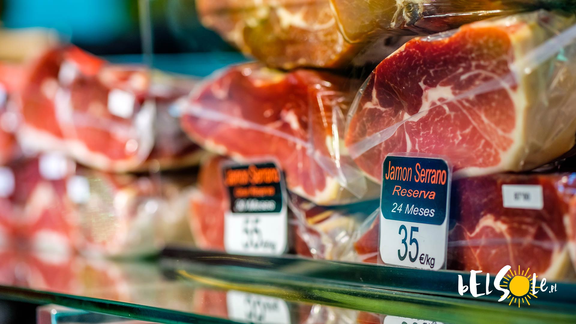 To słynna szynka iberyjska z Hiszpanii, którą możecie kupić w wersji już pokrojonej lub lepiej w całości. Jest to rodzaj wędzonej nogi wieprzowej produkowanej w Hiszpanii. Jamon Iberico produkowane jest z czarnej świni rasy iberyjskiej. Ile kosztuje Jamon Iberico w sklepie w Hiszpanii? Kosztuje na prawdę sporo, bo za nogę Jamon Iberico czasami trzeba zapłacić i tysiące euro. Jeśli chcecie kupić coś tańszego, kupcie Jamon Serrano, czyli szynkę górską – podobną do Iberico – różnicą jest oczywiście gatunek świni. Szynka serrano pochodzi od białej świni, którą można znaleźć w wielu krajach, natomiast szynka iberyjska pochodzi od świń rasy iberyjskiej. Za Serrano zapłacicie około 50 EUR za nogę w Hiszpanii