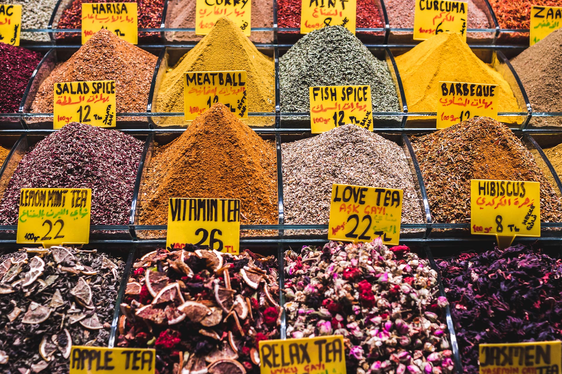 Położenie Turcji pozwala na różnorodność i efektywną uprawę oraz zbieranie ziół. Kuchnia turecka bogata jest w charakterystyczne smaki i wiele mieszanek przypraw, które możecie kupić na targach i marketach tureckich. Niektóre z nich sprzedawane są także na dolegliwości i choroby. Jakie przyprawy kupicie w Turcji? Czerwoną paprykę, Tymianek, rozmaryn, kminek, cynamon, goździki, pieprz i wiele innych. Sprzedaje się je na gramy ze specjalnych stoisk, ich kolor przyciąga wzrok na targowiskach. Turcja to nie jest bardzo drogi kraj, więc i przyprawy tutaj są w rozsądnej cenie. Mieszanka kosztuje zazwyczaj od 40 TL do około 90 TL za porcję.
