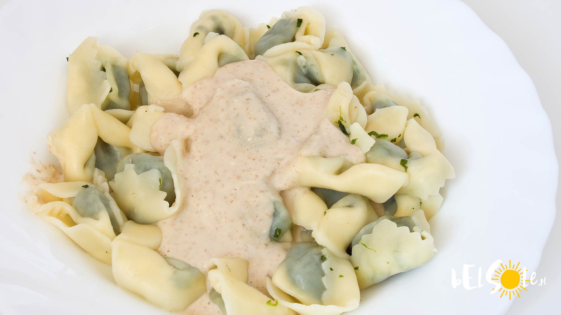 To sos typowy dla kuchni w Genui. Połącz biały chleb, orzechy włoskie, parmezan, oliwę z oliwek, czosnek, sól i pieprz a otrzymasz pyszny sos orzechowy który możesz użyć do makaronu takiego jak wymienionego powyżej lub innego faszerowanego ravioli.