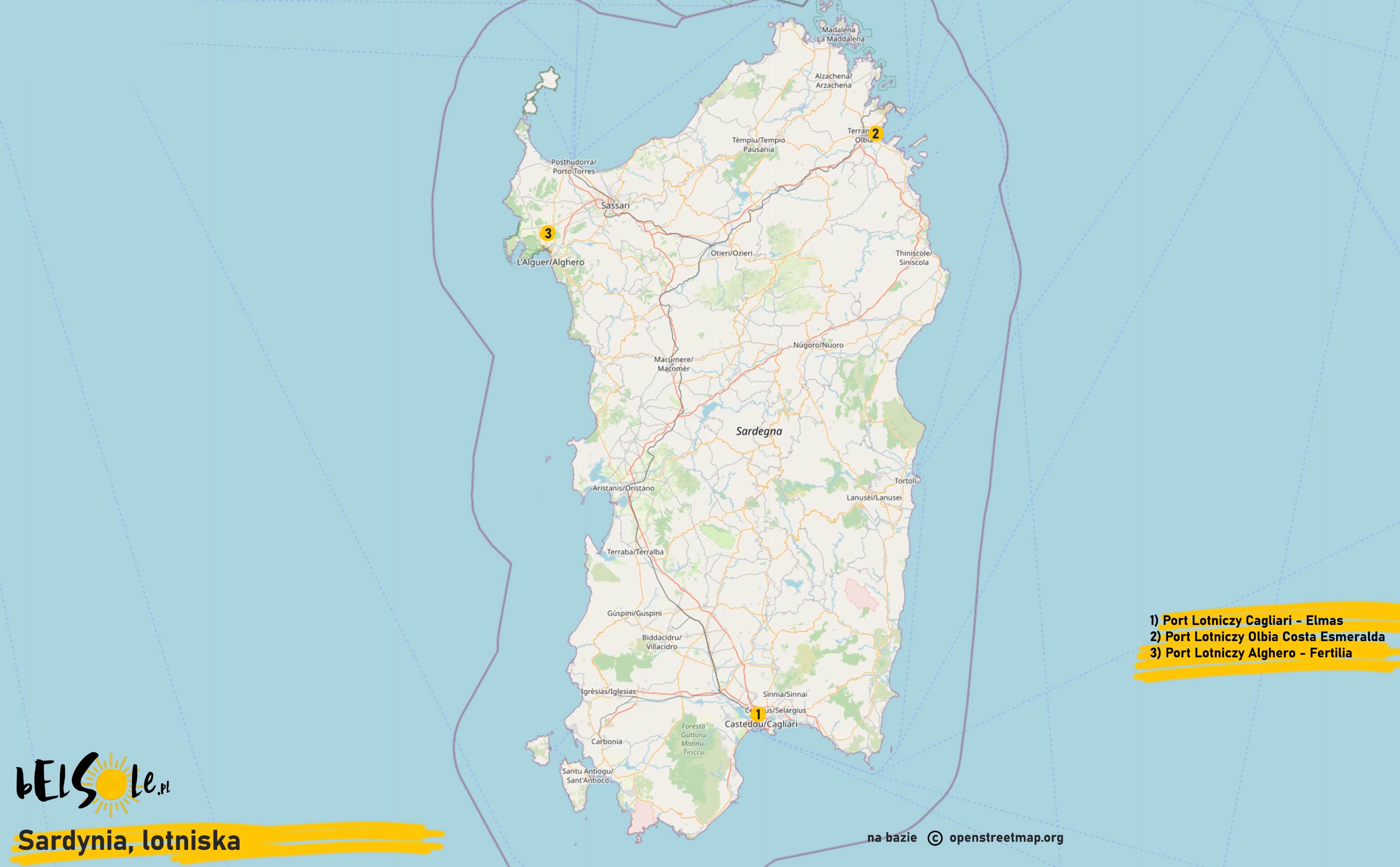 1) Port Lotniczy Cagliari – Elmas 2) Port Lotniczy Olbia Costa Esmeralda 3) Port Lotniczy Alghero – Fertilia