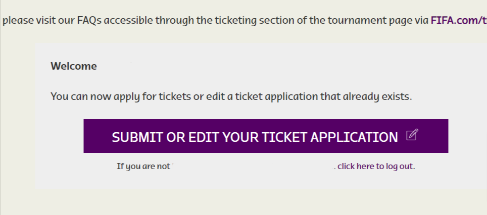 Wchodzimy na stronę https://www.fifa.com/tickets gdzie przywita nas taki ekran: