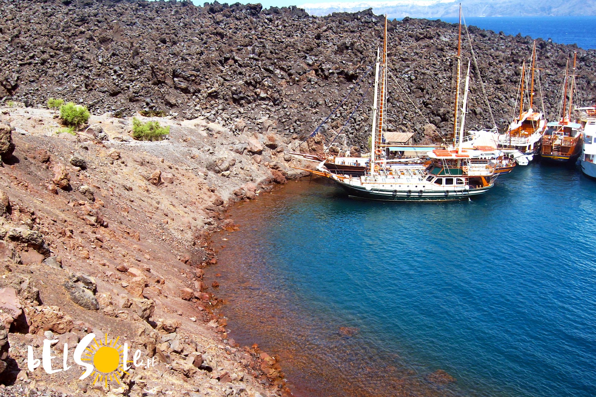 Może nie są gorące, a po prostu bardzo ciepłe. Gorące źródła znajdują się w centrum Kaldery Santorini na wysepce Nea Kameni. Temperatura wynosi od 30 do 35 stopni Celsjusza. Dopłyniecie tam tylko łodzią, koszt wycieczki na wulkan to około 20 EUR, musicie ze sobą wziąć strój kąpielowy, ręcznik i wygodne buty. Dodatkowo musicie mieć 5 EUR za wejście na wulkan.
