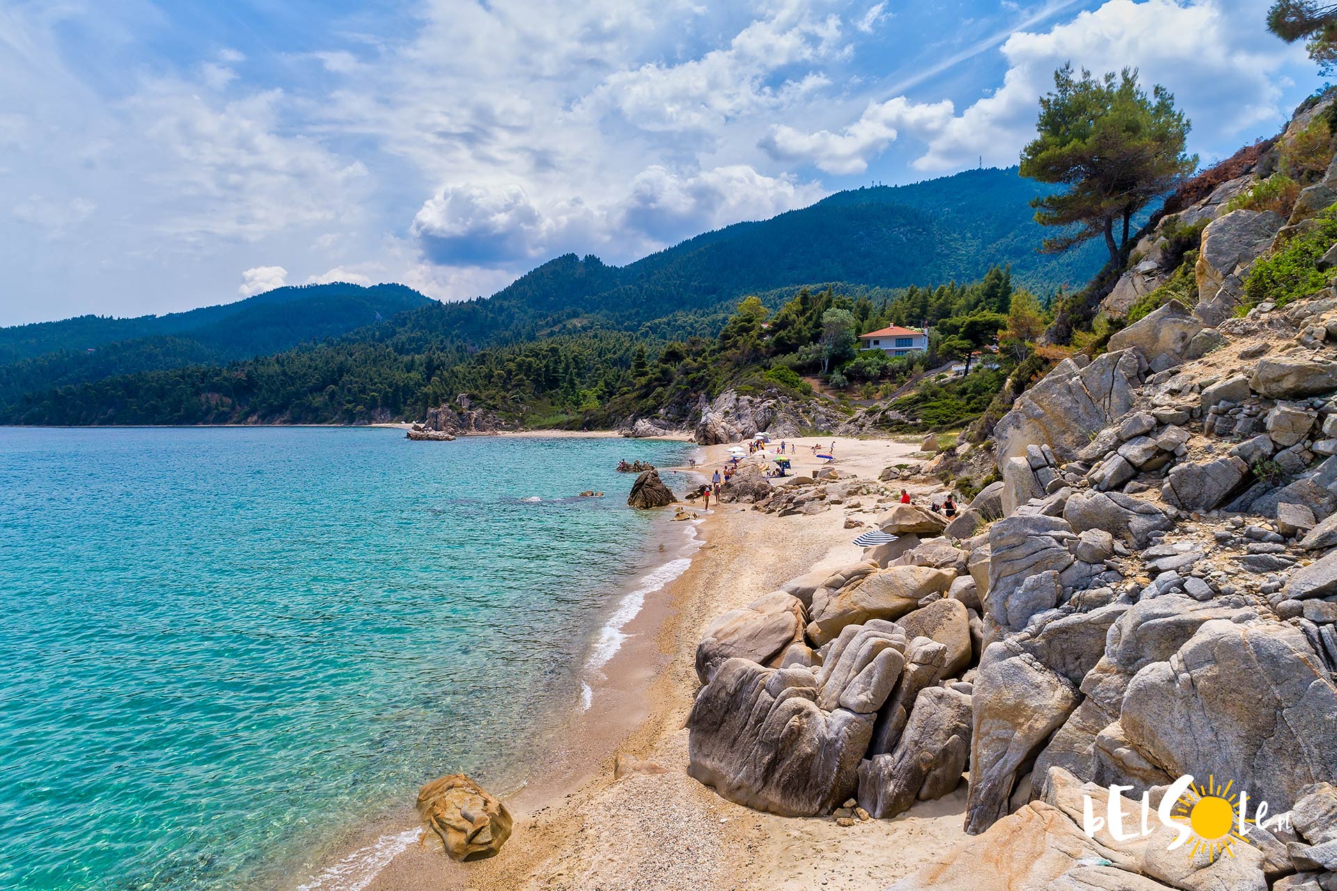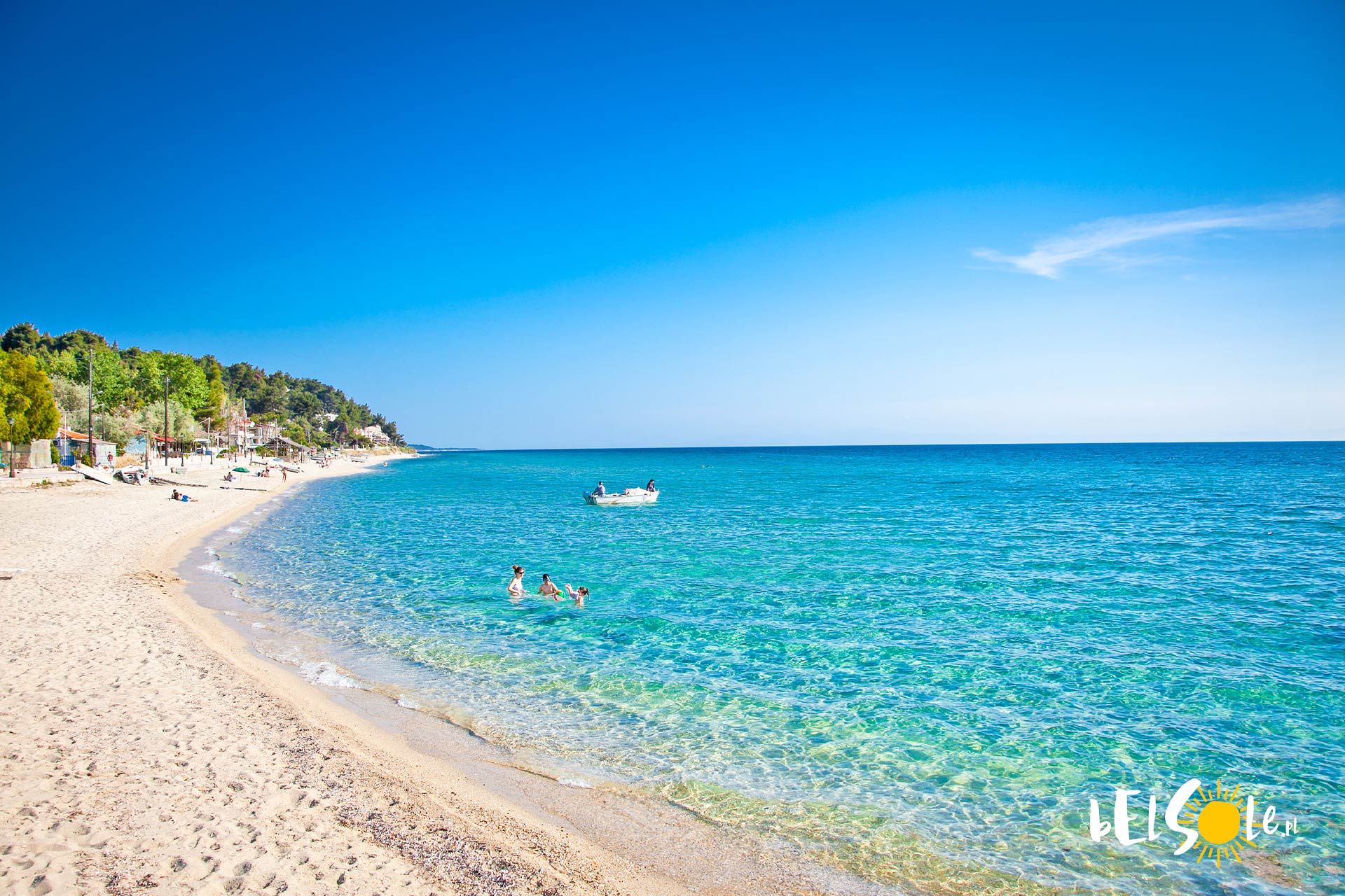 Półwysep Kassandra słynie z piaszczystych plaż z łagodnymi zejściami do morza, które są świetnym wyborem na rodzinne wakacje. Wśród nich wyróżnia się Sani Beach, położona w pobliżu turystycznej miejscowości o tej same nazwie. Piasek jest tu drobny i bardzo jasny, niemalże biały, a turkus akwenu zachwyca krystaliczną przejrzystością. Na plaży Sani nawet najmłodsi turyści mogą spokojnie kąpać się w morzu – woda jest płytka nawet kilkanaście metrów od brzegu. Znajdziecie tu parasole, leżaki oraz małe bary z zimnymi napojami i kawą. Jedyne co musicie zabrać ze sobą to ręczniki, emulsja do opalania i dobre humory!