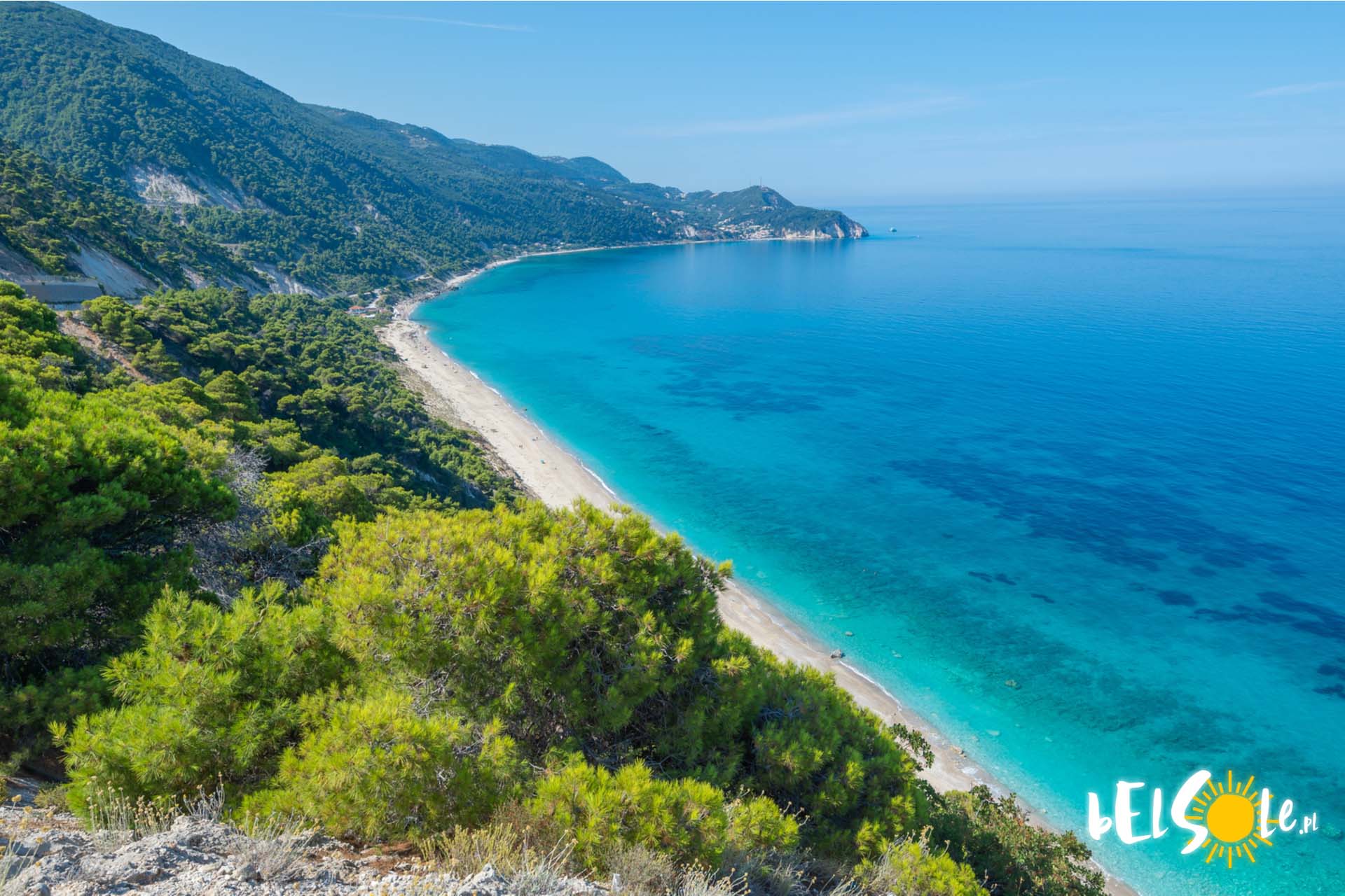 To duża i piękna plaża zaraz obok Agios Nikitas, aby móc skorzystać z jej uroków trzeba zejść ścieżką około 20 min z pobliskiej drogi. Plaża nie jest zazwyczaj bardzo zapchana, przez trudność dostania się tutaj, często wolnych miejsc jest sporo. Weźcie normalne buty na przejście ścieżką, klapki nie będą najlepszym wyborem – będą wręcz kiepską decyzją. Milos jest piaszczysta, znajdziecie tutaj wypożyczalnie sprzętu (15 EUR za dzień za leżaki i parasol). Z plaży pływa także wodna taksówka, która może Was wziąć za 3 EUR do miasteczka. To kolejna plaża z pięknymi klifami zaraz obok niej.