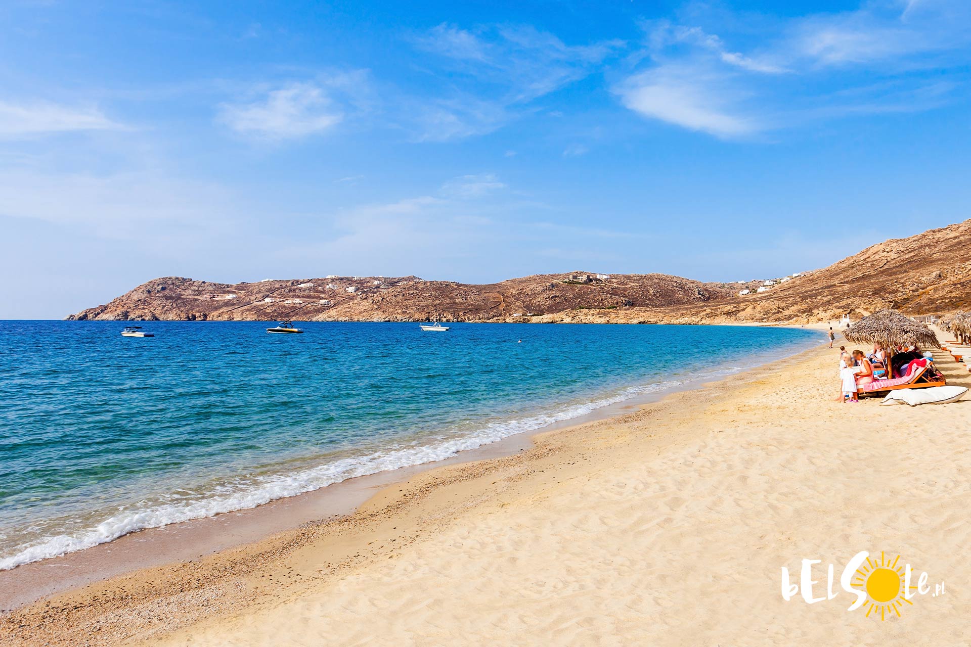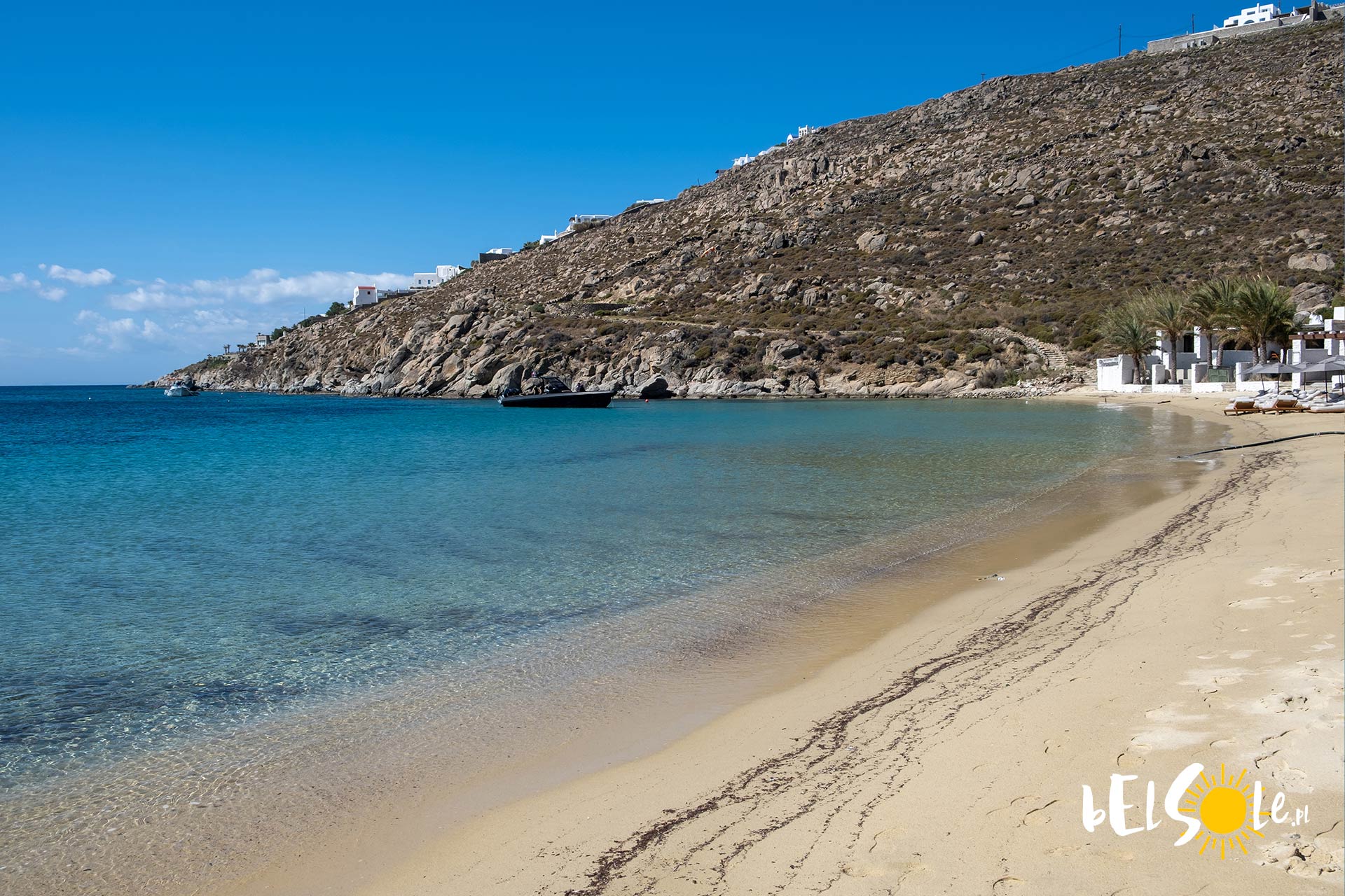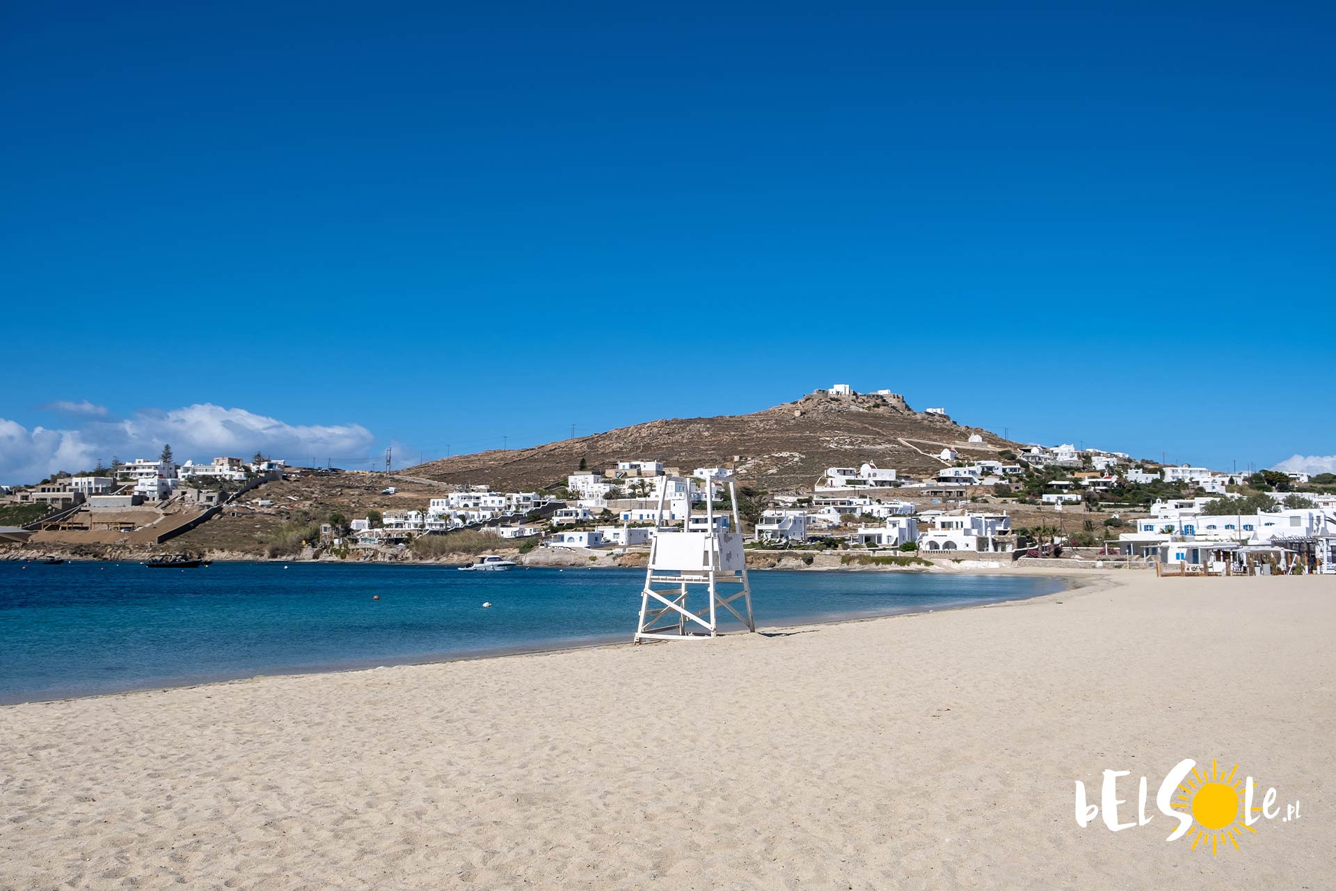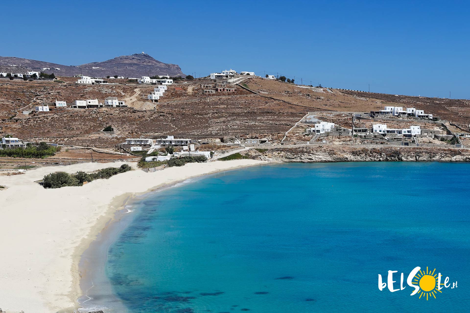 To plaża na północy Mykonos z raczej ubogą infrastrukturą ale za to nieźle ocenianym barem Alemagou Beach Bar Restaurant. Woda jest przejrzysta, idealnie niebieska – a piasek jest złocisty. Uważajcie, żeby nie trafić na porę z mocnym wiatrem, wtedy fale mogą być wysokie – na ogół to bardzo spokojna plaża.