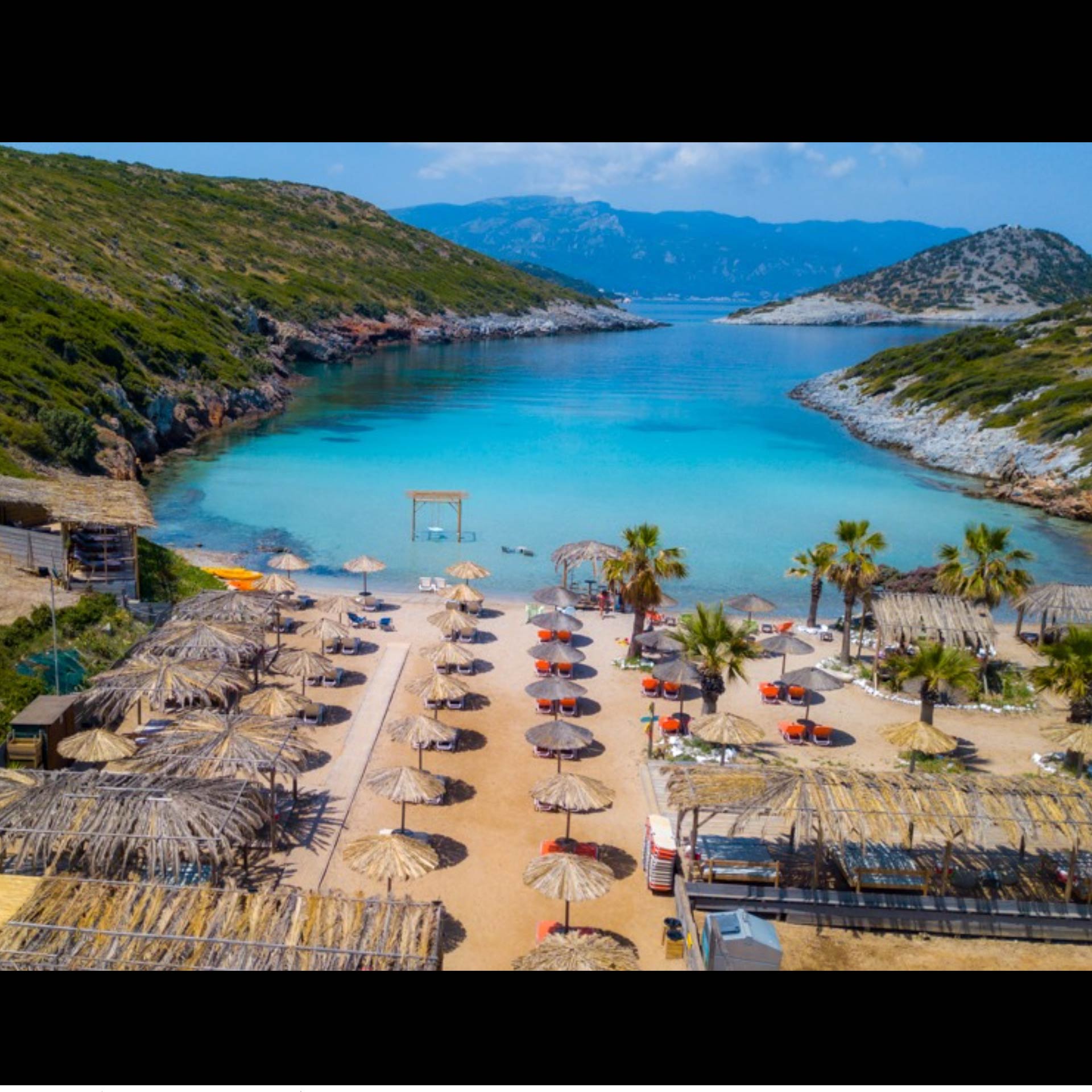 To piękne miejsce z lazurową wodą, zobaczycie stąd tureckie Kusadasi po drugiej stronie zatoki. Na plaży znajdziecie też sporo cienia, przebieralnie, prysznic – jednak nie ma tutaj beach baru, czasami jest food truck.