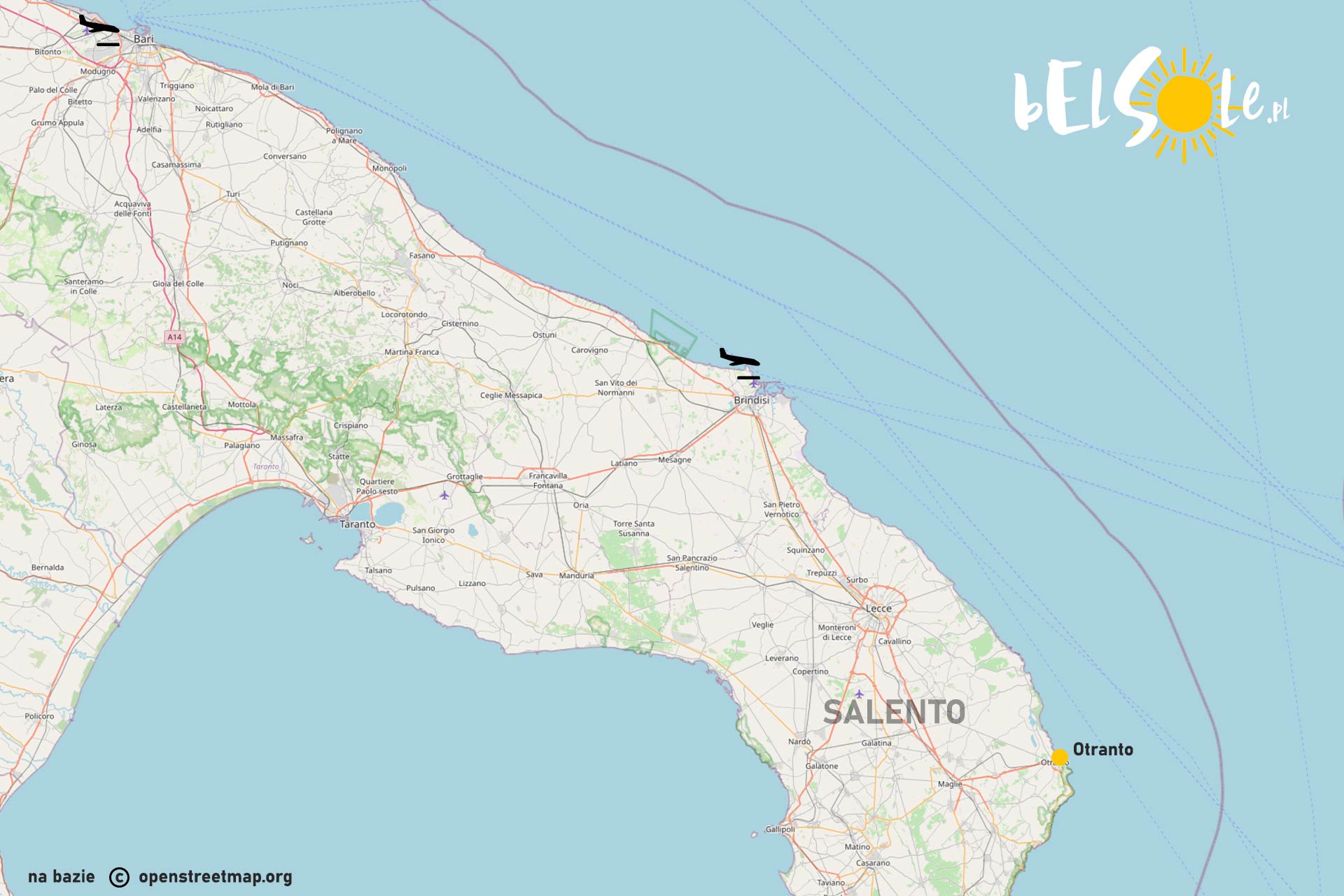 Otranto jest jednym z miast na końcu włoskiego buta i dojazd tam może wydawać się trudny – jednak taki nie jest. Najbliższe lotniska znajdziecie w Bari i Brindisi we Włoszech lub na Korfu w Grecji. Jeśli zdecydowaliście się wybrać lotnisko we Włoszech to dojazd do Otranto jest raczej banalny. Apulia i Salento jest pełne dróg SS czyli takich naszych ekspresówek, z Bari i Brindisi do samego Otranto prowadzą właśnie takie dwupasmowe drogi. Zazwyczaj limit to około 90 do 110 km/h jeśli wybraliście dojazd samochodem do Otranto. Jeśli chcecie dojechać komunikacją zbiorową to teoretycznie w Otranto jest stacja kolejowa (aktualnie nie kursują tutaj pociągi, sprawdźcie to przed swoją podróżą) lecz nam proponowano dojazd pociągiem trenitalia do Lecce i z Lecce autobus FSE do Otranto. Wygodniej jednak wybrać samochód, zwłaszcza, że część atrakcji jest trochę poza miastem.