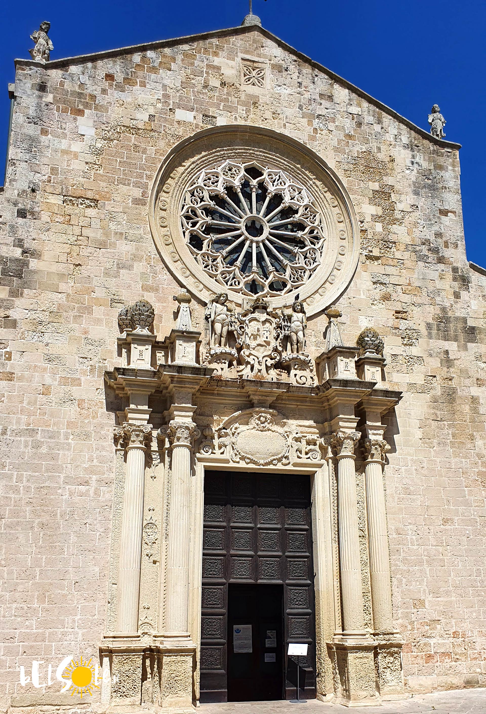 To największa świątynia w mieście, mieszcząca się w samym centrum Otranto blisko głównych traktów. Katedra została konsekrowana w 1088 roku na pozostałościach wcześniejszej świątyni i domus romanum. Przed wejściem do Katedry warto zwrócić uwagę na rozetę nad wejściem (Katedra została wybudowana jest w stylu romańskim). Wewnątrz najciekawsze są zdecydowanie sklepienie oraz mozaikowa podłoga. Na podłodze znajduje się wyjątkowa mozaika z lat 1163 – 65 przedstawiająca sceny ze Starego Testamentu, bestiariusz oraz drzewo życia. Na mozaice znajdziecie też scenę z mitu lotu Aleksandra Wielkiego z dwoma gryfami. Wejście jest darmowe, pod główną nawą znajduje się też wejście do dodatkowych pomieszczeń pod spodem Katedry.