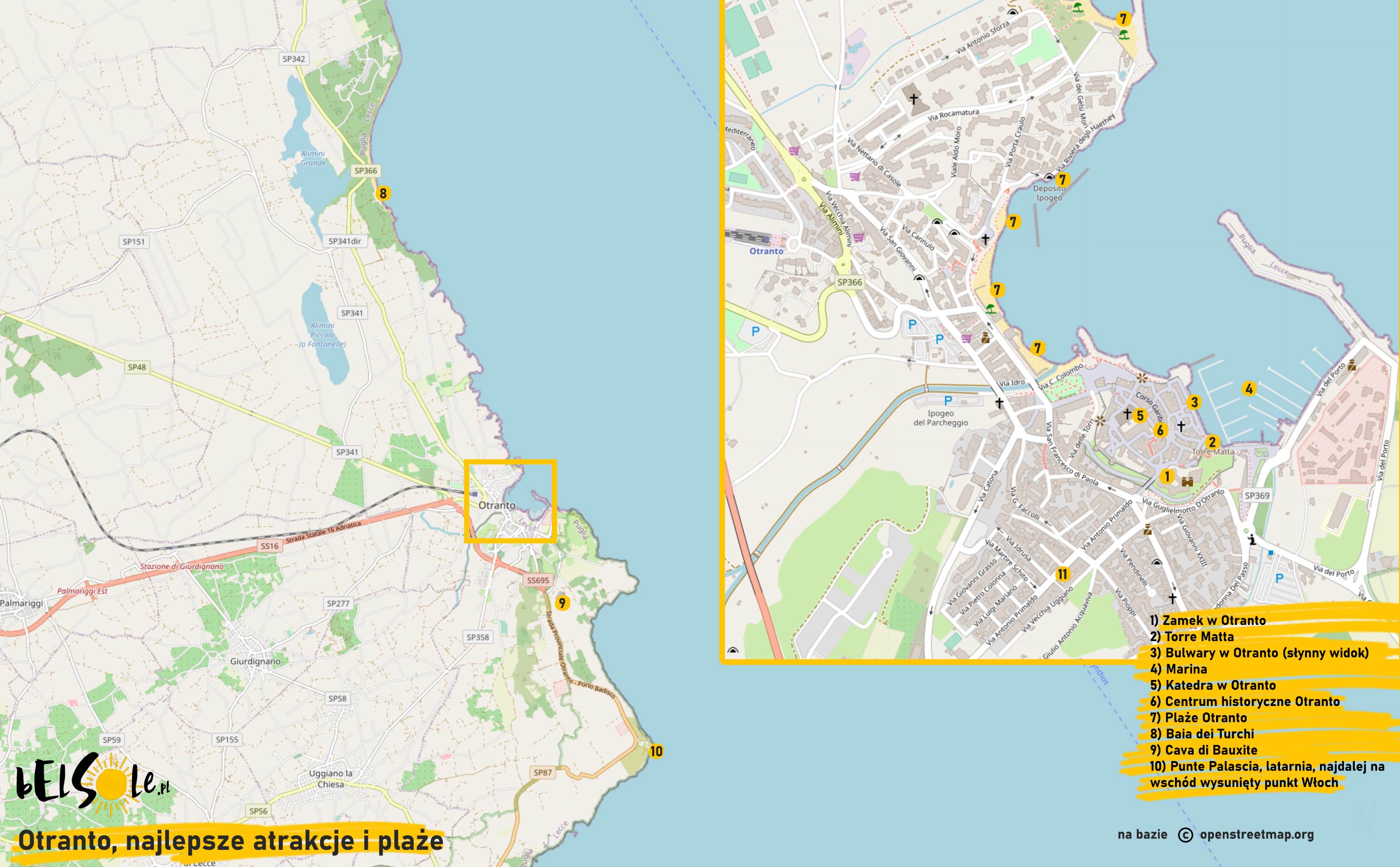 Mapa atrakcji i plaż Otranto