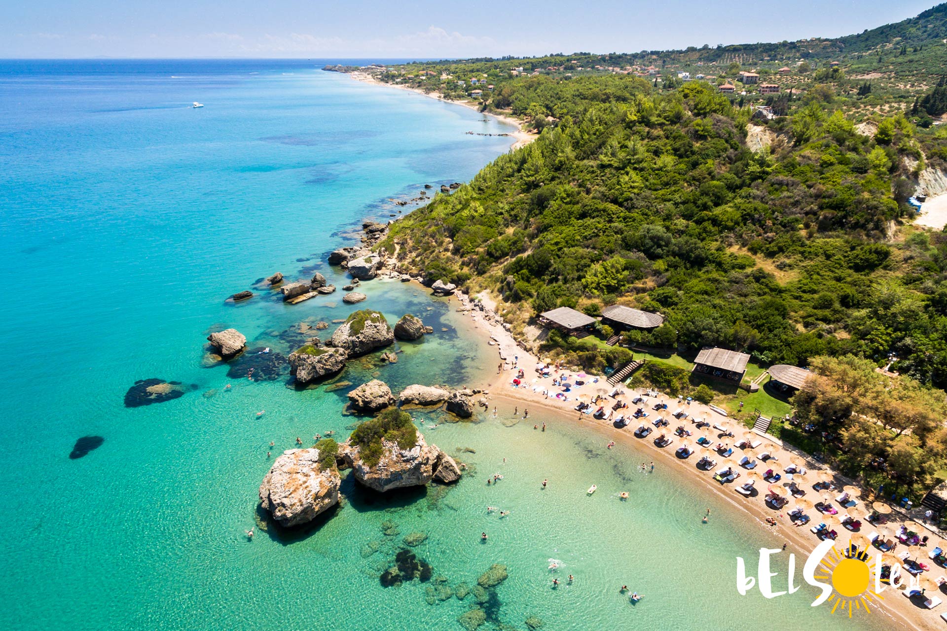 To jedna z najlepszych plaż na Zakynthos – co prawda nie ma tutaj długiej linii złotego piasku, ale jest lazurowa ciepła woda Morza Jońskiego, urokliwe widoki na klify okalające zatoczkę. Możecie tutaj pożyczyć leżak oraz skorzystać z usług lokalnej tawerny, obok niej znajduje się też parking. Plaża raczej nie dla małych dzieci.